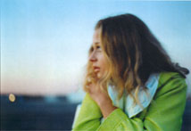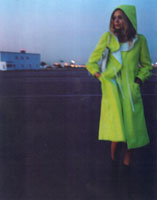 Chartreuse and white woven wool rain coat with matching dress: Andre Courreges