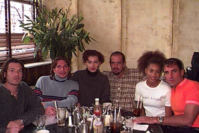 California based Janet Howard showed some good solid stuff for fall. One way to tell if a collection is viable for sales, is to ask the girls that wear the stuff first. N.Y.'s Time Cafe, right below the Metropolitan agency, and on-the-way-back-to-the-agency in SoHo, tables a lot of girls between shows. Both Koshanna (Pauline's) and Andrea Radutoiu from Company, agreed that they are over wearing skirts so short that you have to worry about covering your bum all the way down the runway. They liked the way Janet's cute and sexy clothes fit so well that they'd even buy some.