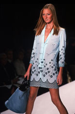 Remember the very recent era of never leaving the house in jeans that weren't dark enough (even the downest glamour-boys were getting them dry-cleaned) - in loyal homage to our dark denim godfather Helmut Lang? Most of us have digressed by now, and have tossed a pair or two into the washer - and now the time is ripe again to wear them freely in all their faded glory. It is also safe to wear your old denim jackets now, without looking like a total dufus. Times are virtually rule free: Mix your denims with prints, and prints with florals, and animals with batiks and fringe and don't be afraid. One small rule applies: Don't do double denim.